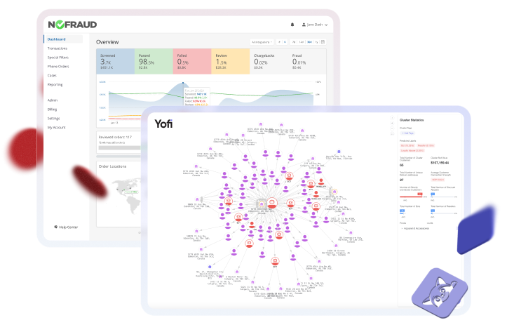 From detecting fuzzed addresses and fake emails, Yofi uses customer clustering to identify connected customer accounts, suspicious behaviors, and social engineering to prevent bad actors attempting to mask their intentions and identity.